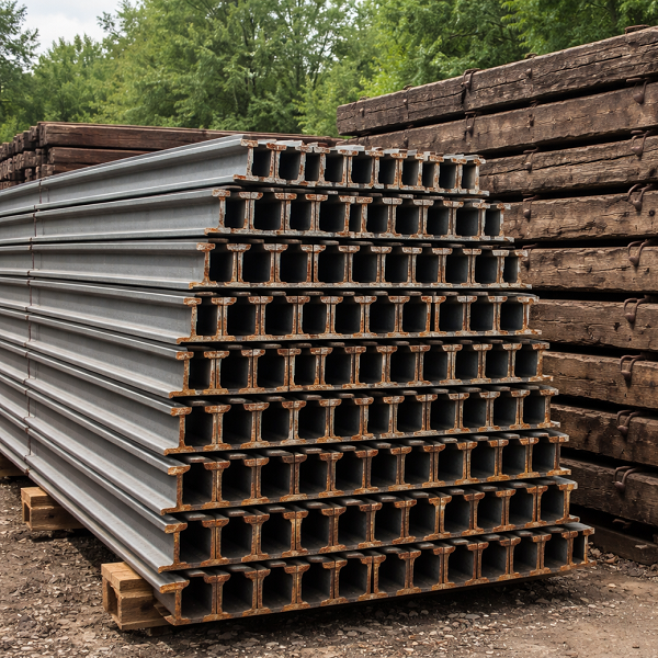 Рельсы железнодорожные — стальные профили, формирующие направляющую поверхность для движения подвижного состава. Конструкция воспринимает динамические нагрузки и передаёт их на подрельсовое основание. Геометрия сечения обеспечивает стабильность колеи и плавность хода.